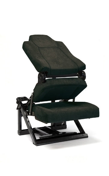 The folding seat can be used in various vehicles with a rail system in the back. It can be opened and folded again in just a few simple steps